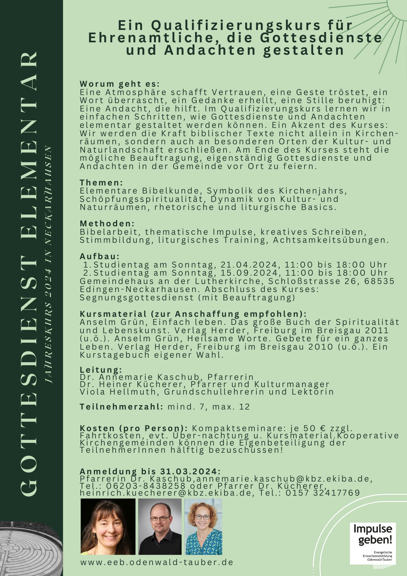 Ein Qualifizierungskurs für Ehrenamtliche, die Gottesdienste und Andachten gestalten